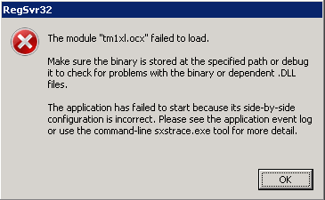 When I try and register the tm1xl.ocx file, I get the attached error.