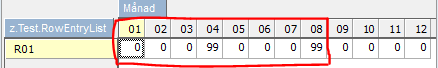 There is a cube with months as columns. Month 04 and 08 have values, all other months are 0.