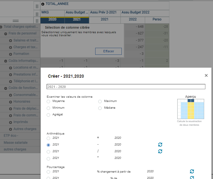TM1 PAW - Exploration view - Insert calcul on 2 dimensions